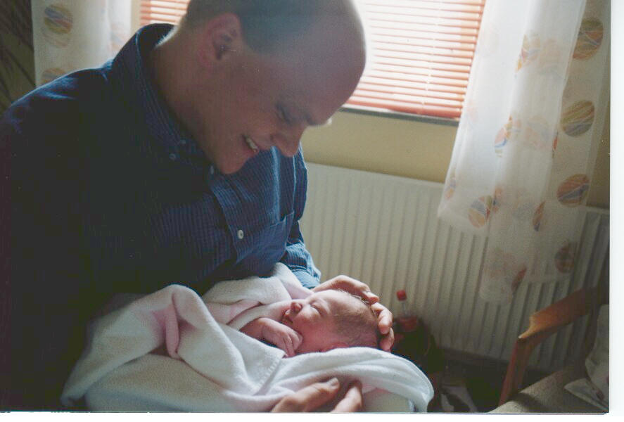 da bin ich das erstemal im Leben in Papa´s Armen... Na und der sieht maechtig stolz aus!